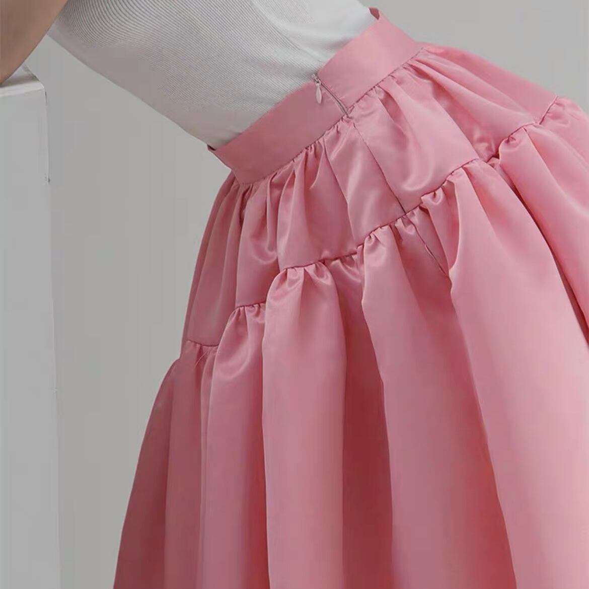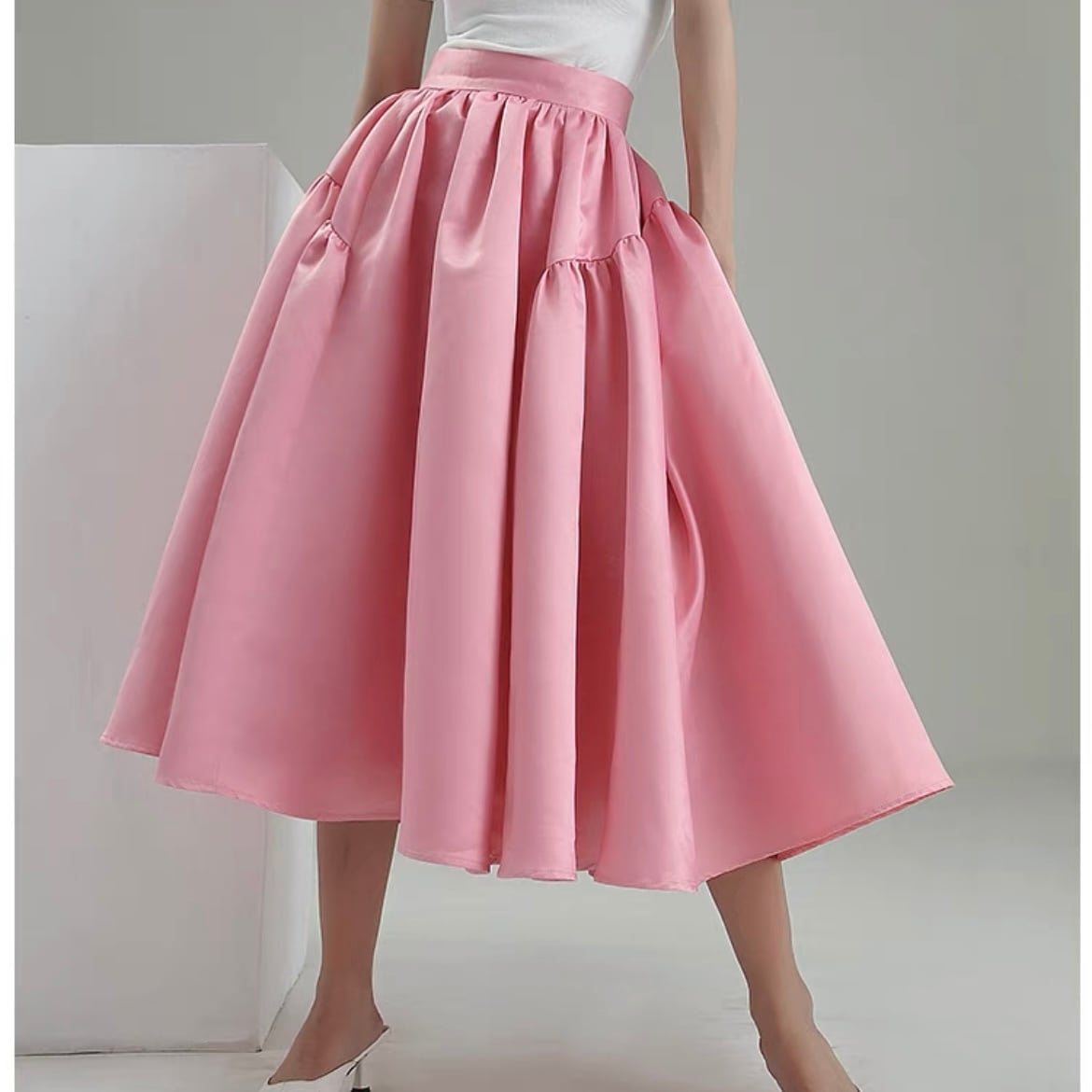 satin vol.flare pinkskirt