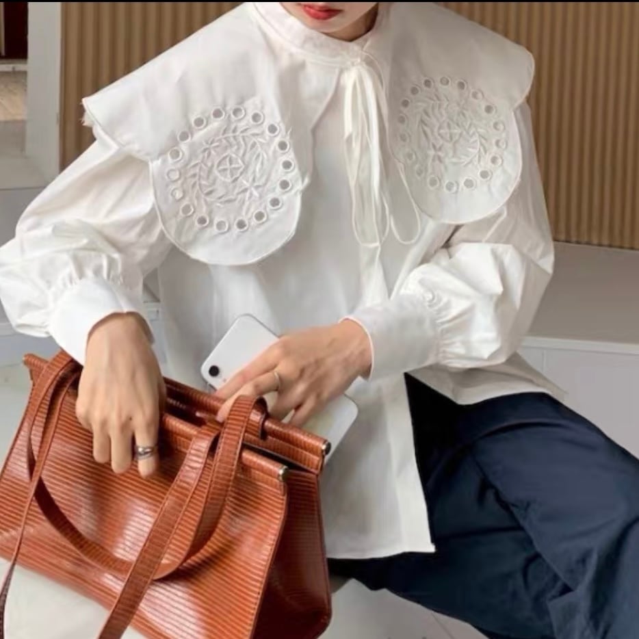 cutwork collar shirt[2 color]