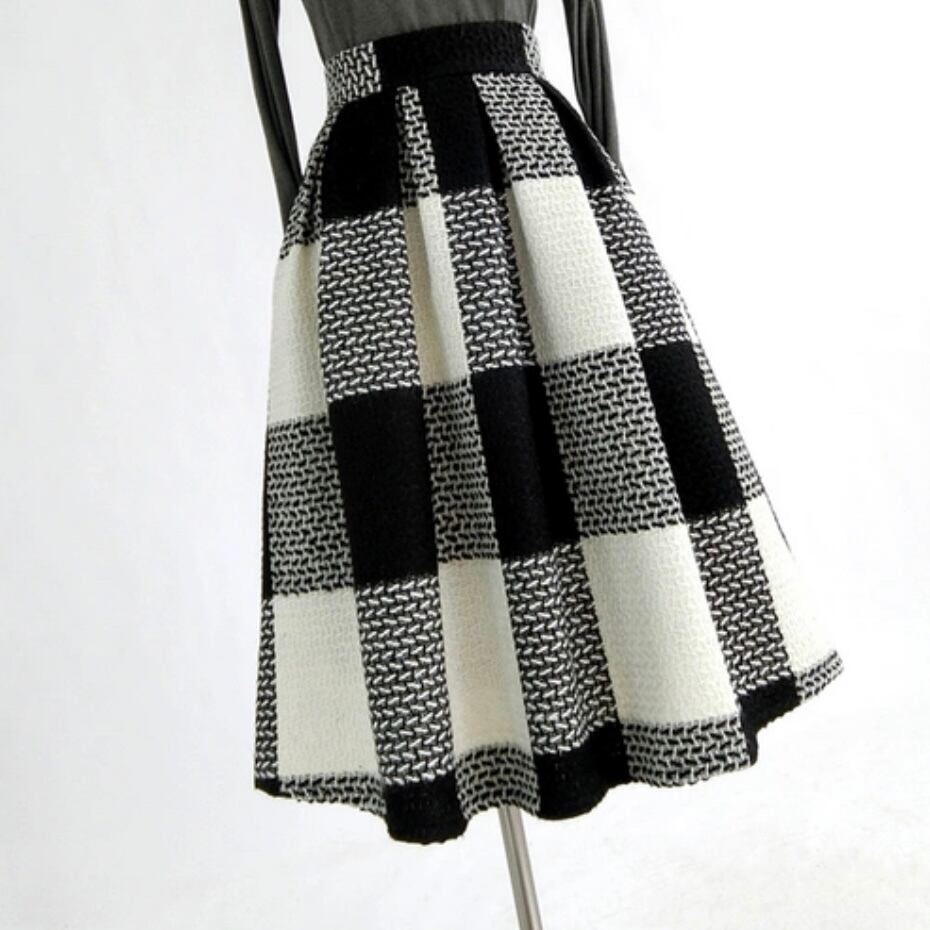 block check flare skirt