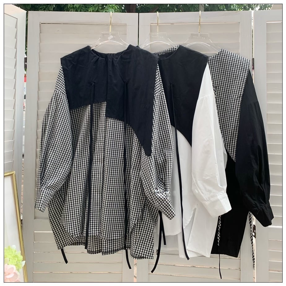Asymmetric collar blouse[3 color]