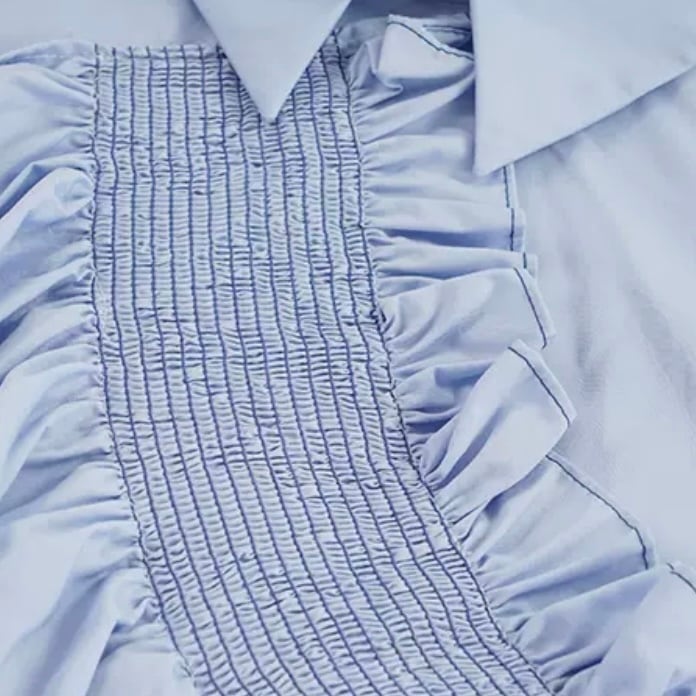 Gather frilly blue shirt