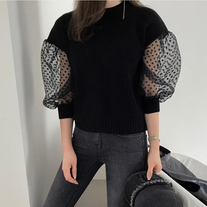 sheer dot puffy knit[2 color]