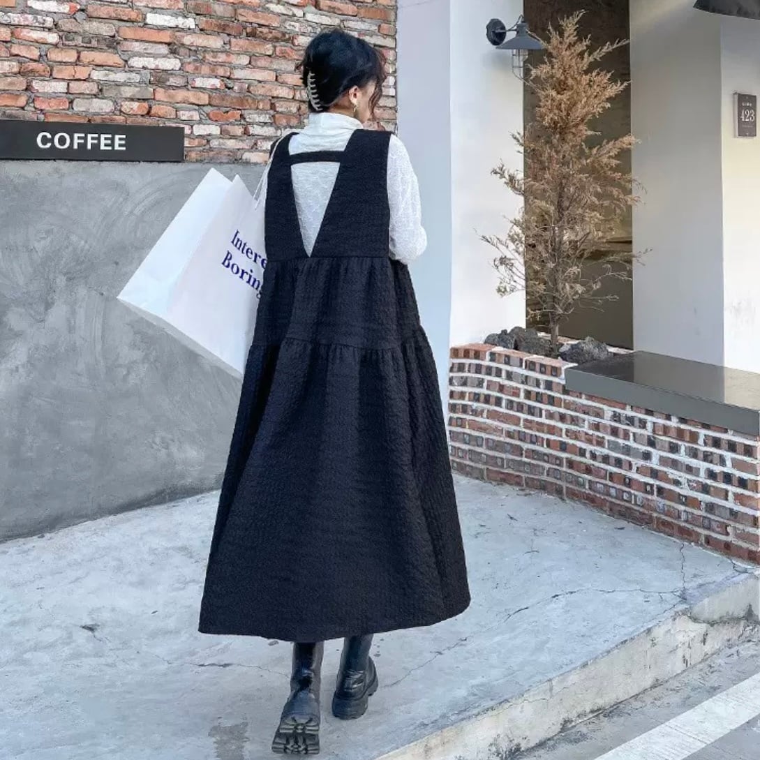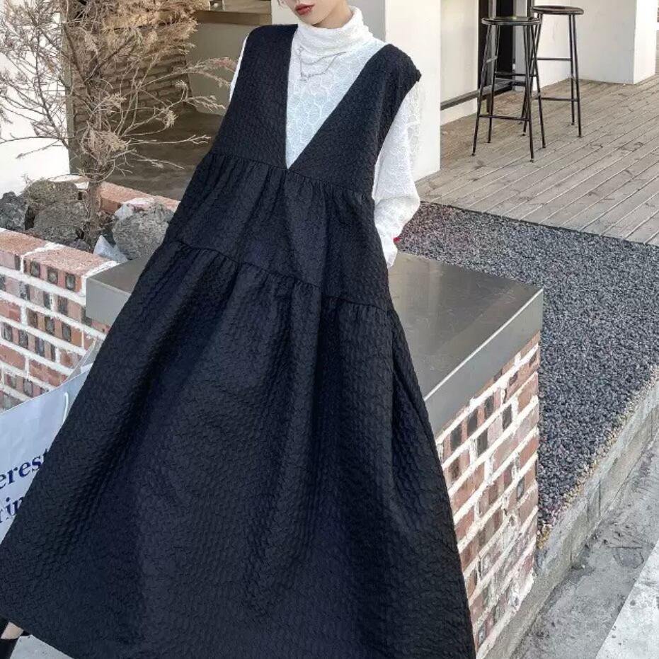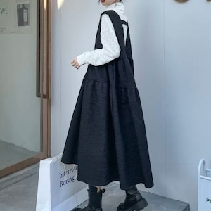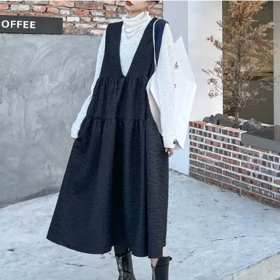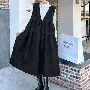 Vneck tiered black dress