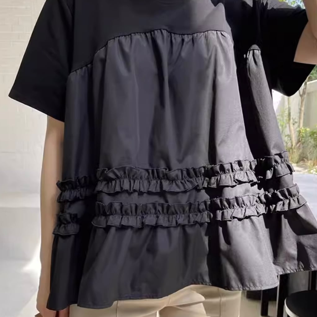 frill tiered T shirt [3 colour]