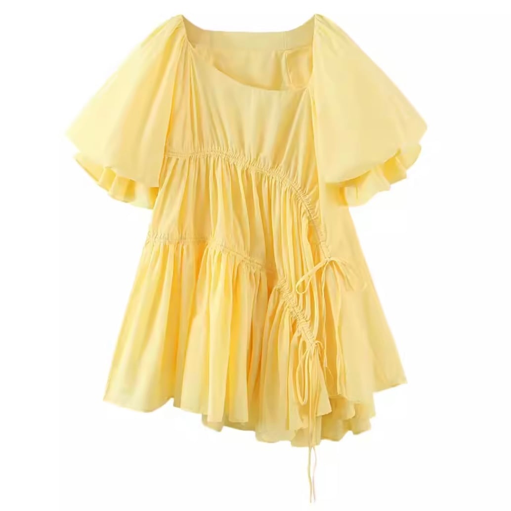 yellow shirring flare tops