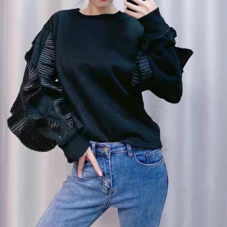 pleated fin sleeve sweat